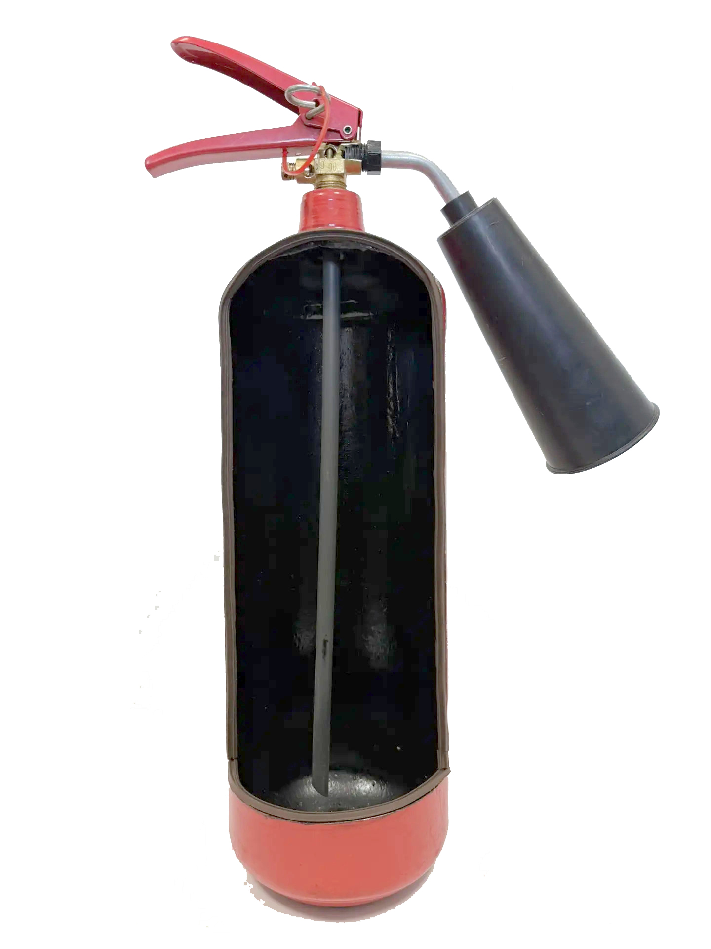 Макет полностью повторяет внешний вид и эргономику реального порошкового огнетушителя типа ОП.