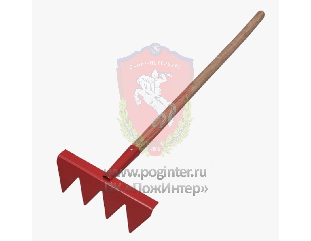Грабли имеют пять острых и твёрдых зубьев и прочный черенок из твёрдой древесины.